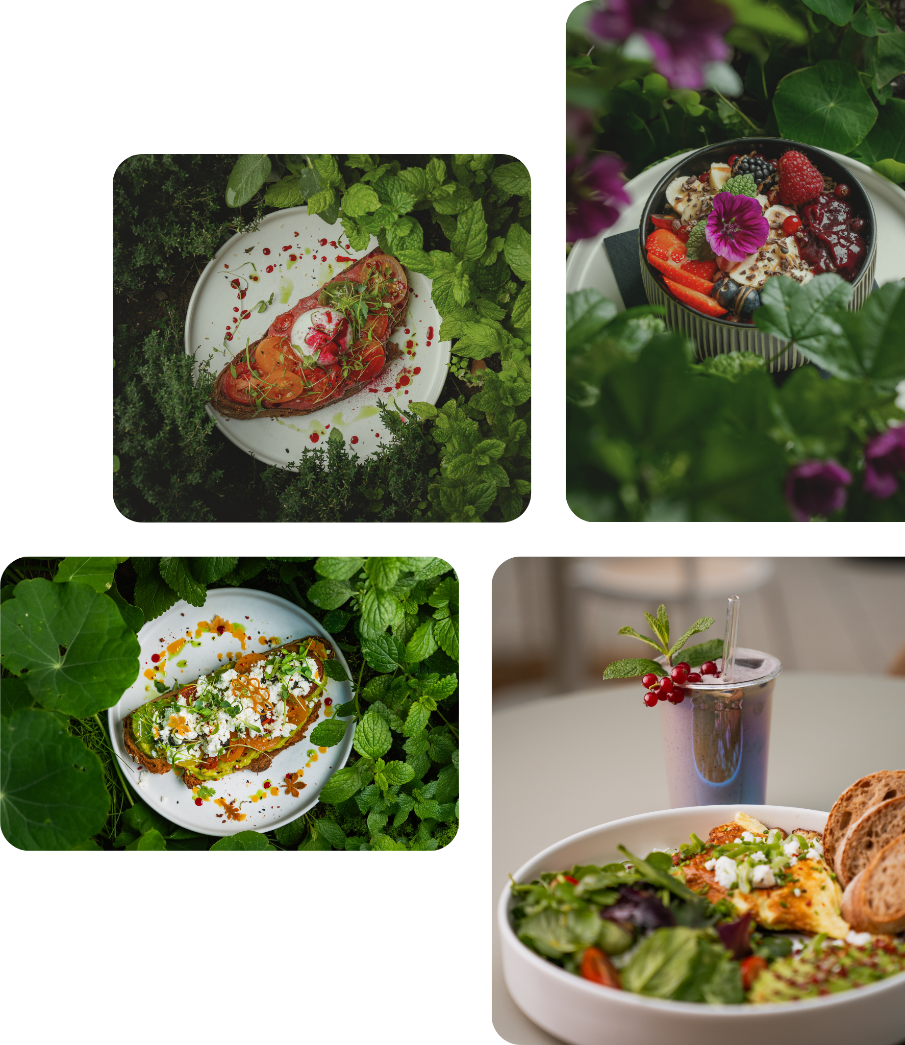 vegetarische & vegane Gerichte glutenfreie Optionen hausgemachte Kuchen & Stullen gesunde Lunches & kreative Bowls