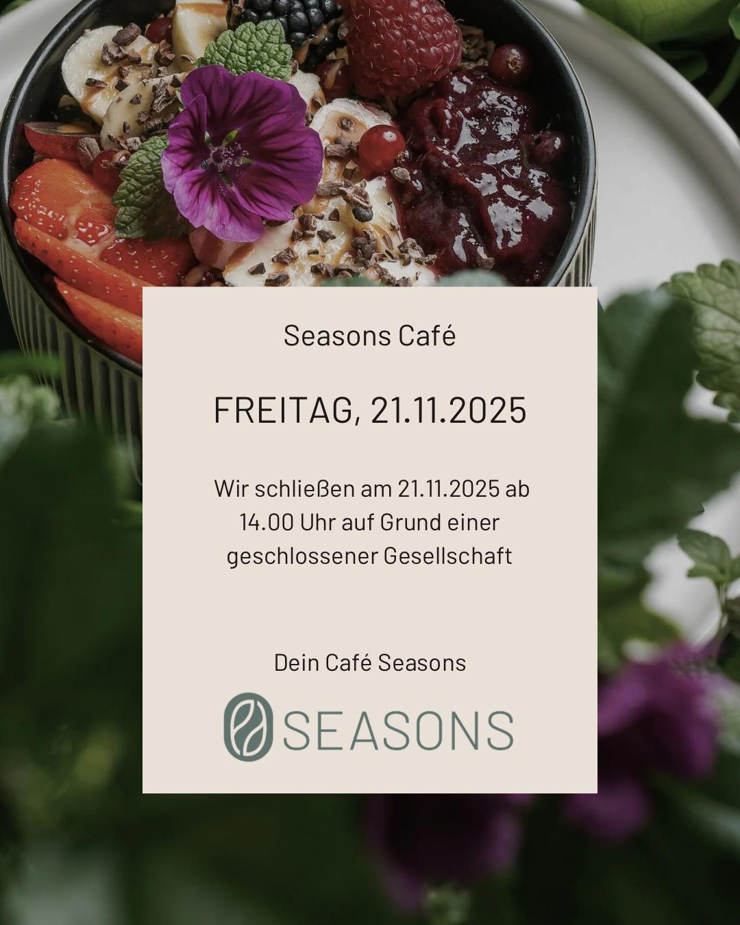 Am 21.11. ab 14:00 Uhr bleibt unser Seasons Café wegen einer geschlossenen Gesellschaft reserviert. Vielen Dank für dein Verständnis – wir freuen uns, dich bald wieder […]